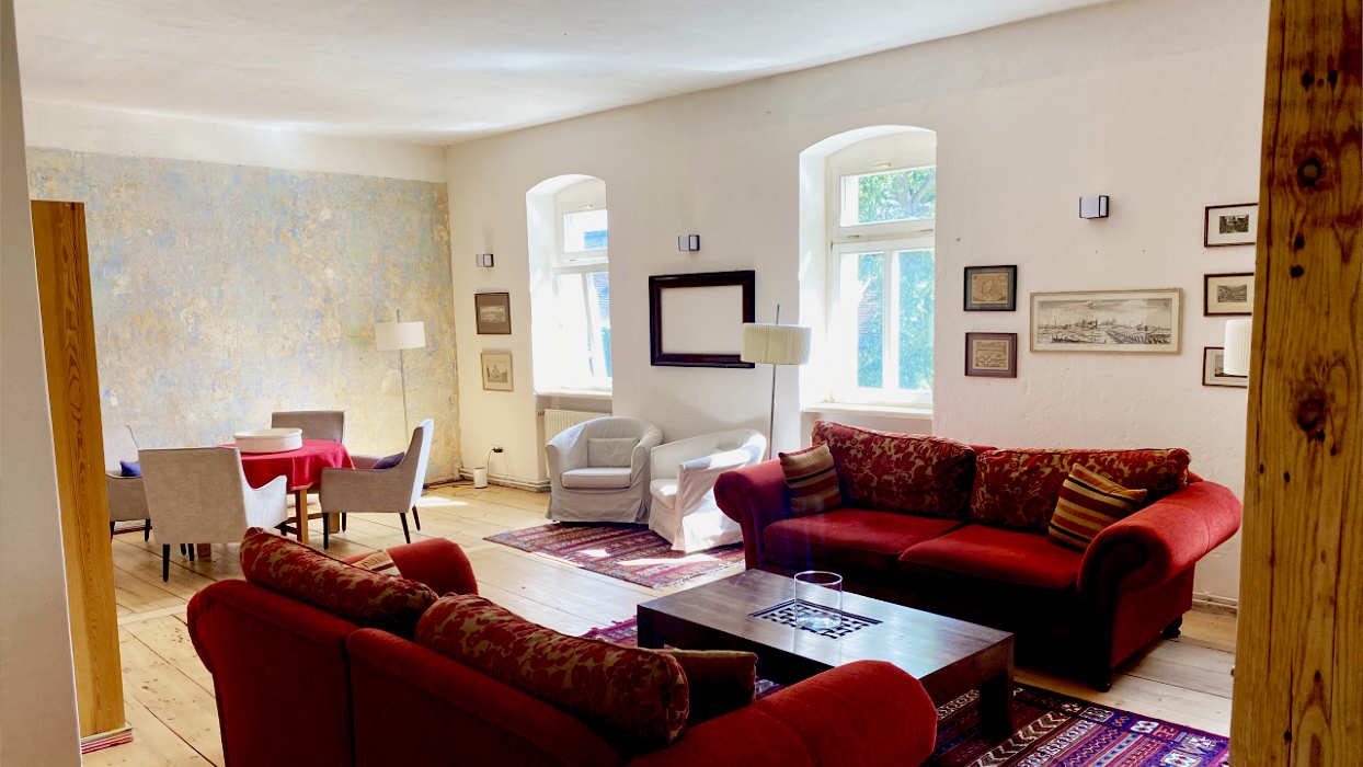 Während unserer Retreat-Tage wohnen wir gemeinsam im Nebengebäude des Schlosses – ein ruhiger, klarer Ort, der uns ganz für uns Frauen zur Verfügung steht.